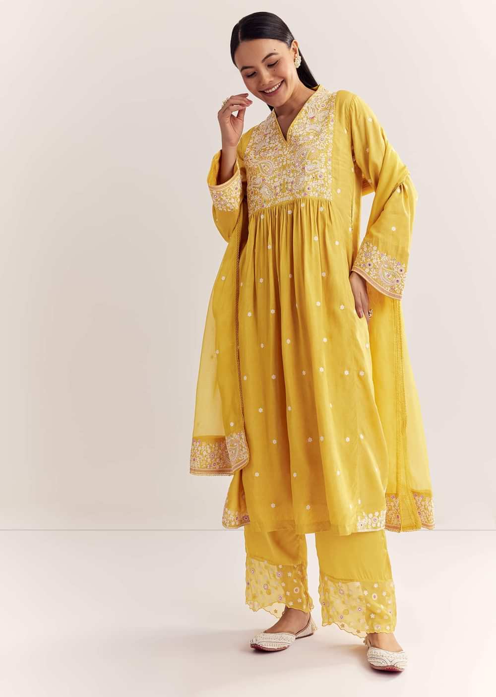 Sunlit and soft, this yellow silk kurta is embroidered in thread work and paired with a weightless organza dupatta—designed for joy-filled moments. Awarded as the Most Trusted Brand, we're delivering... More Product Details