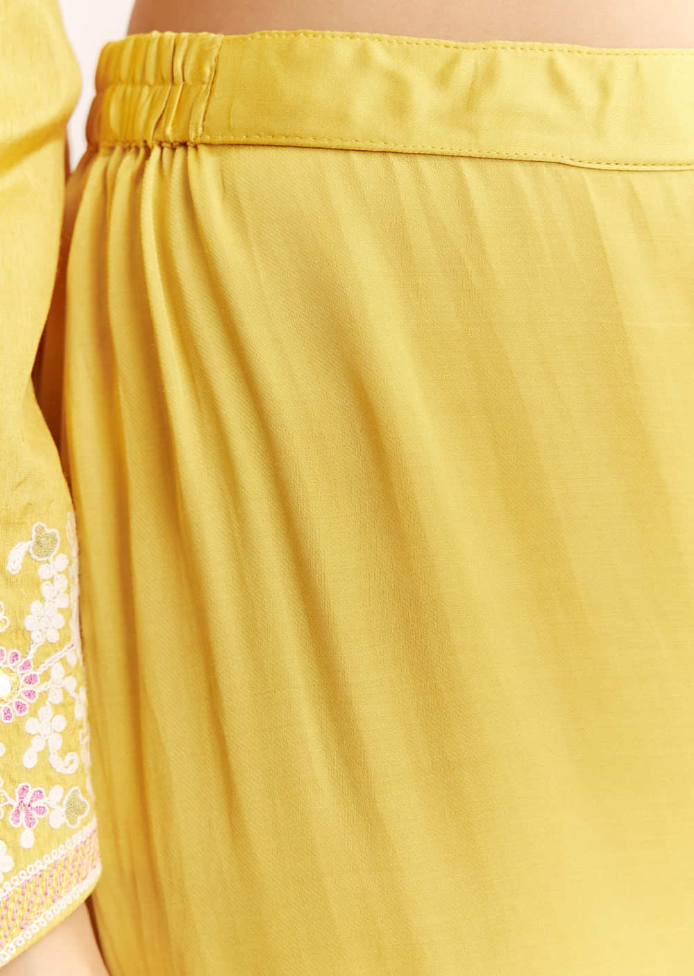 Yellow Silk Kurta Set With Thread Work And Organza Dupatta