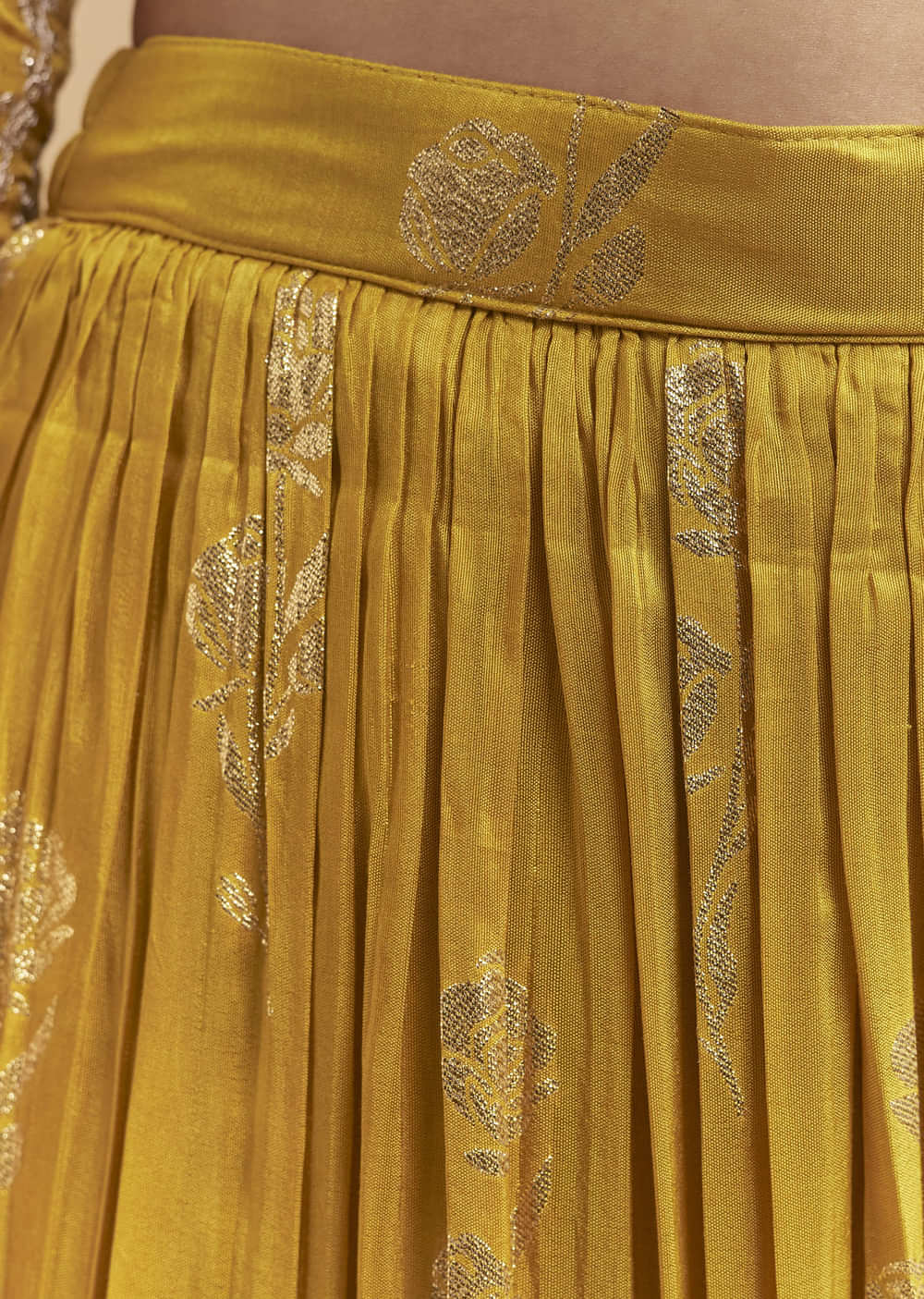 Weave and craft come together in this yellow silk palazzo suit, pairing a weaved palazzo with a hand-embroidered kurta. Zari and sequins add subtle shine that reads refined in pictures.... More Product Details