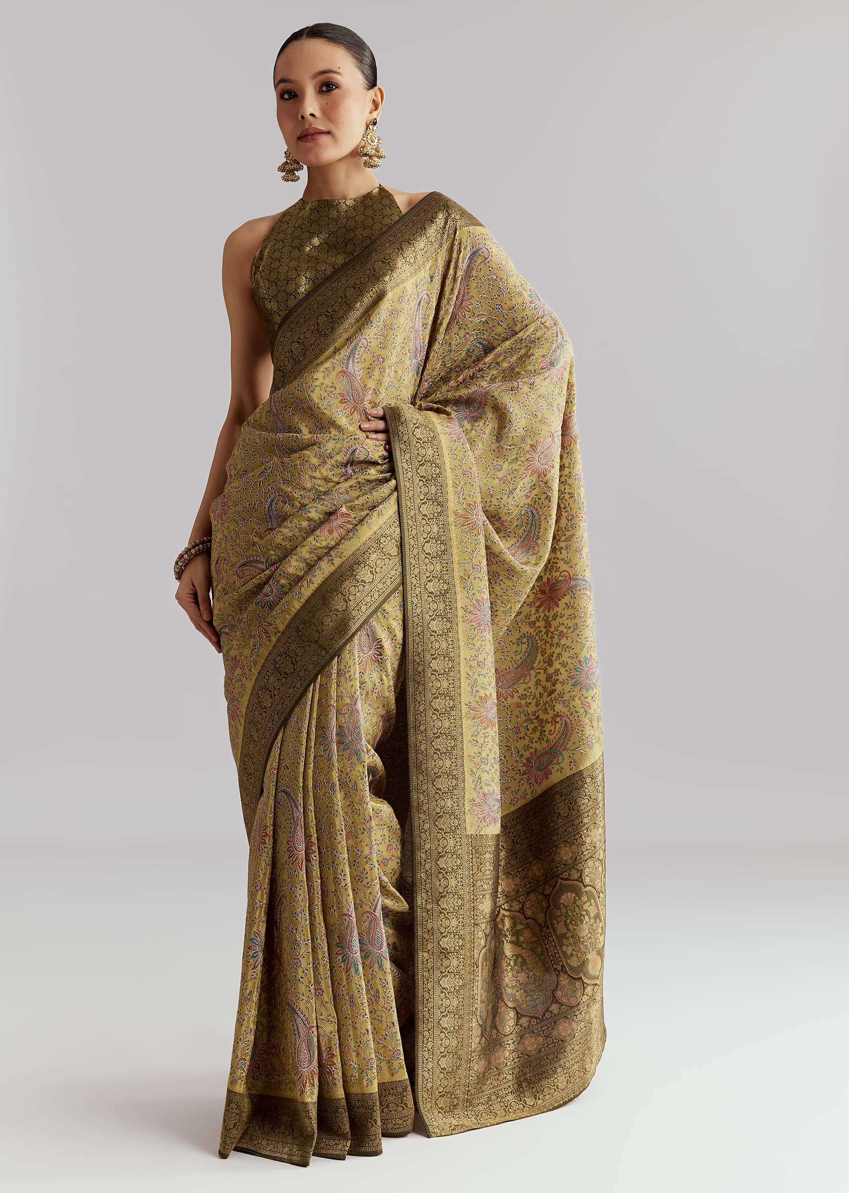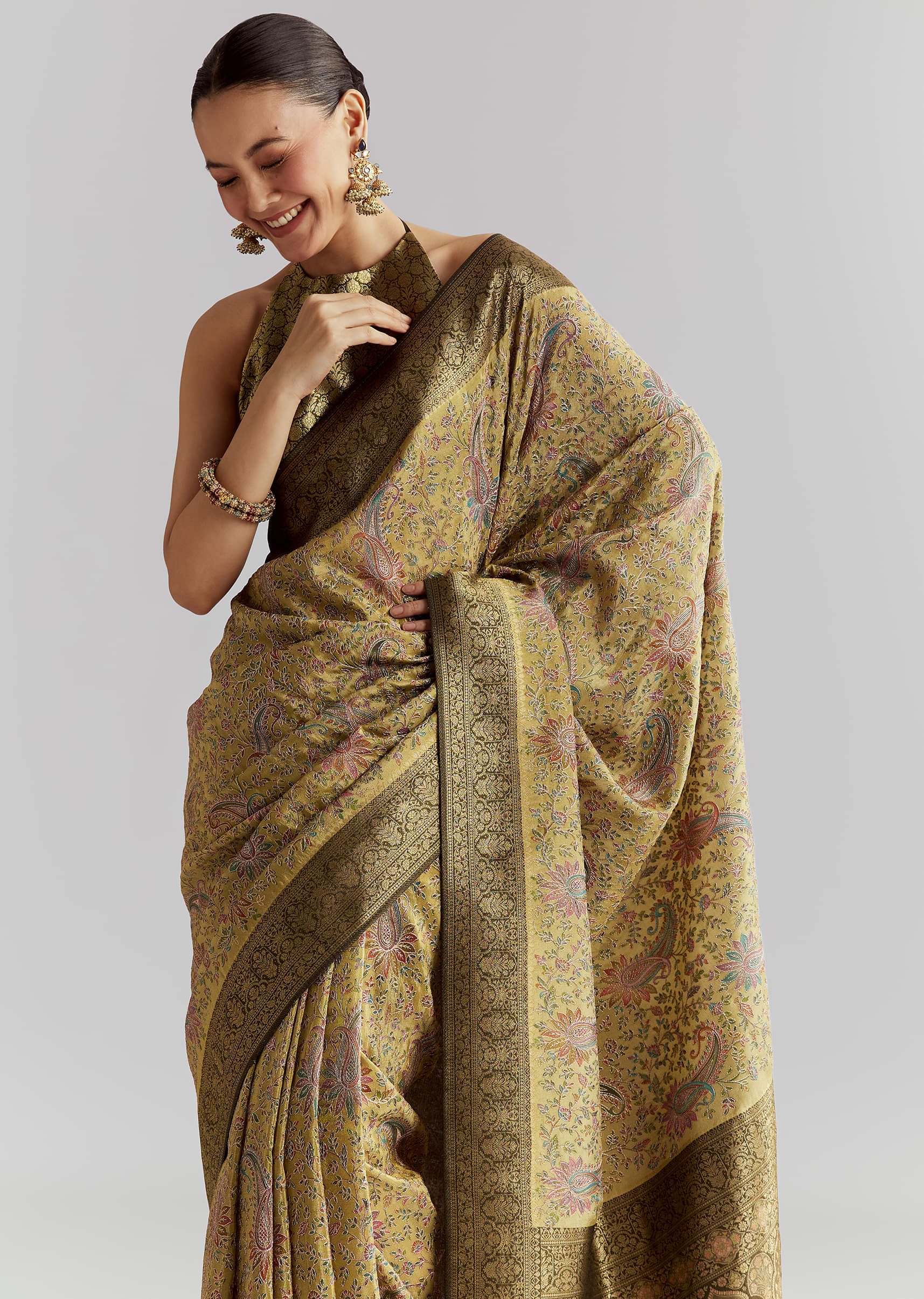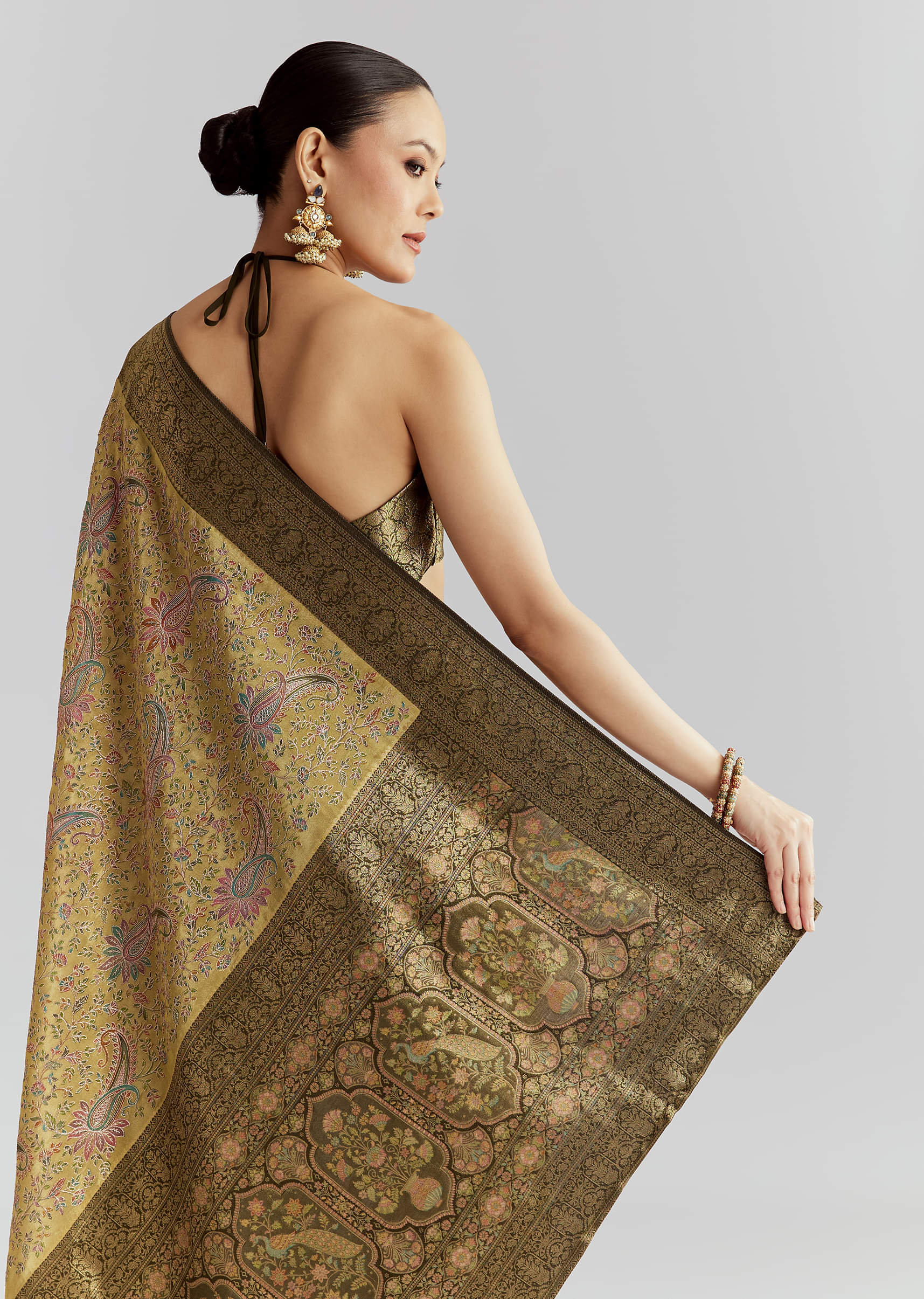 Yellow Silk Woven Saree With Delicate Thread Embroidery