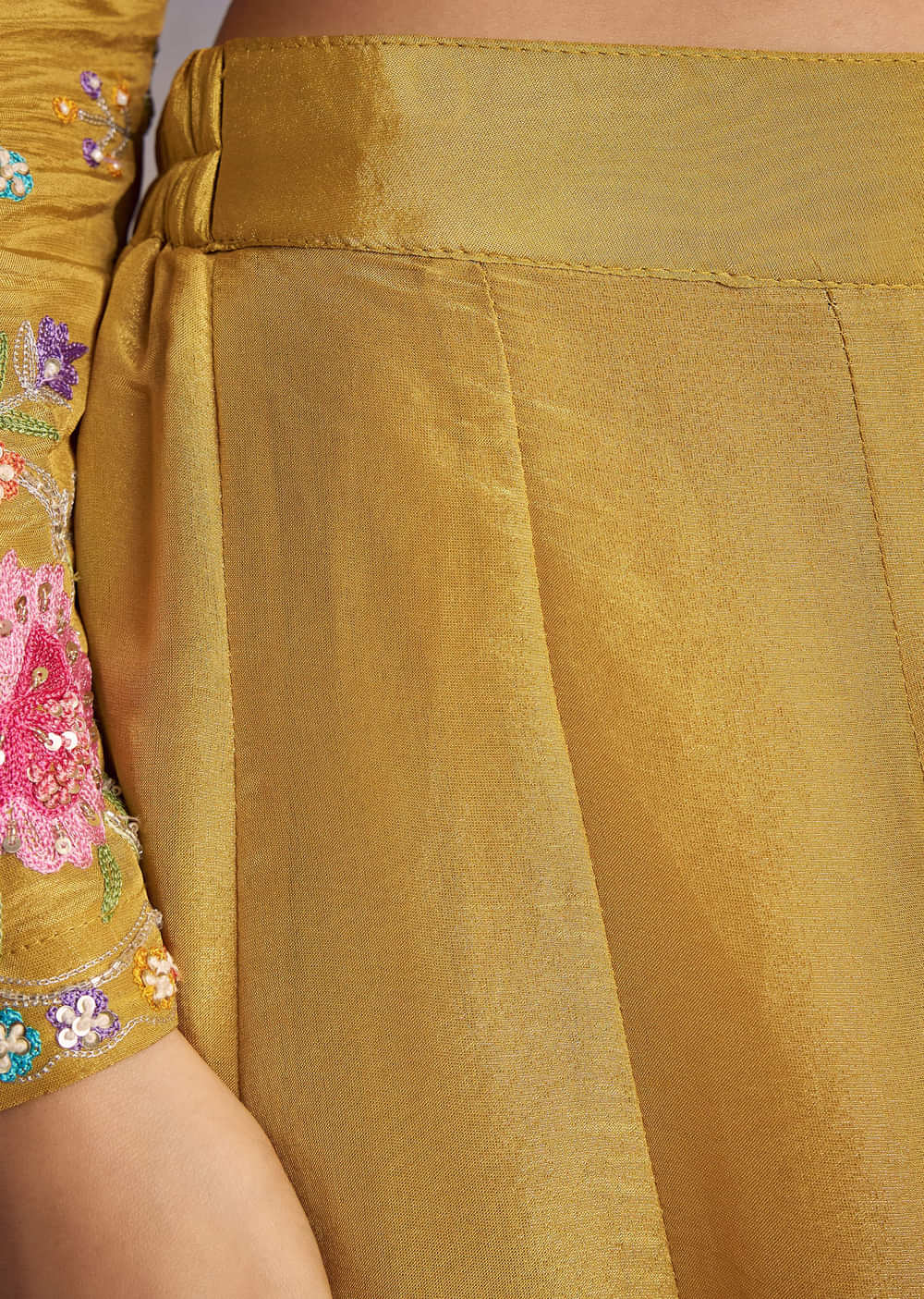 Yellow Tissue Anarkali Set With Resham And Moti Work