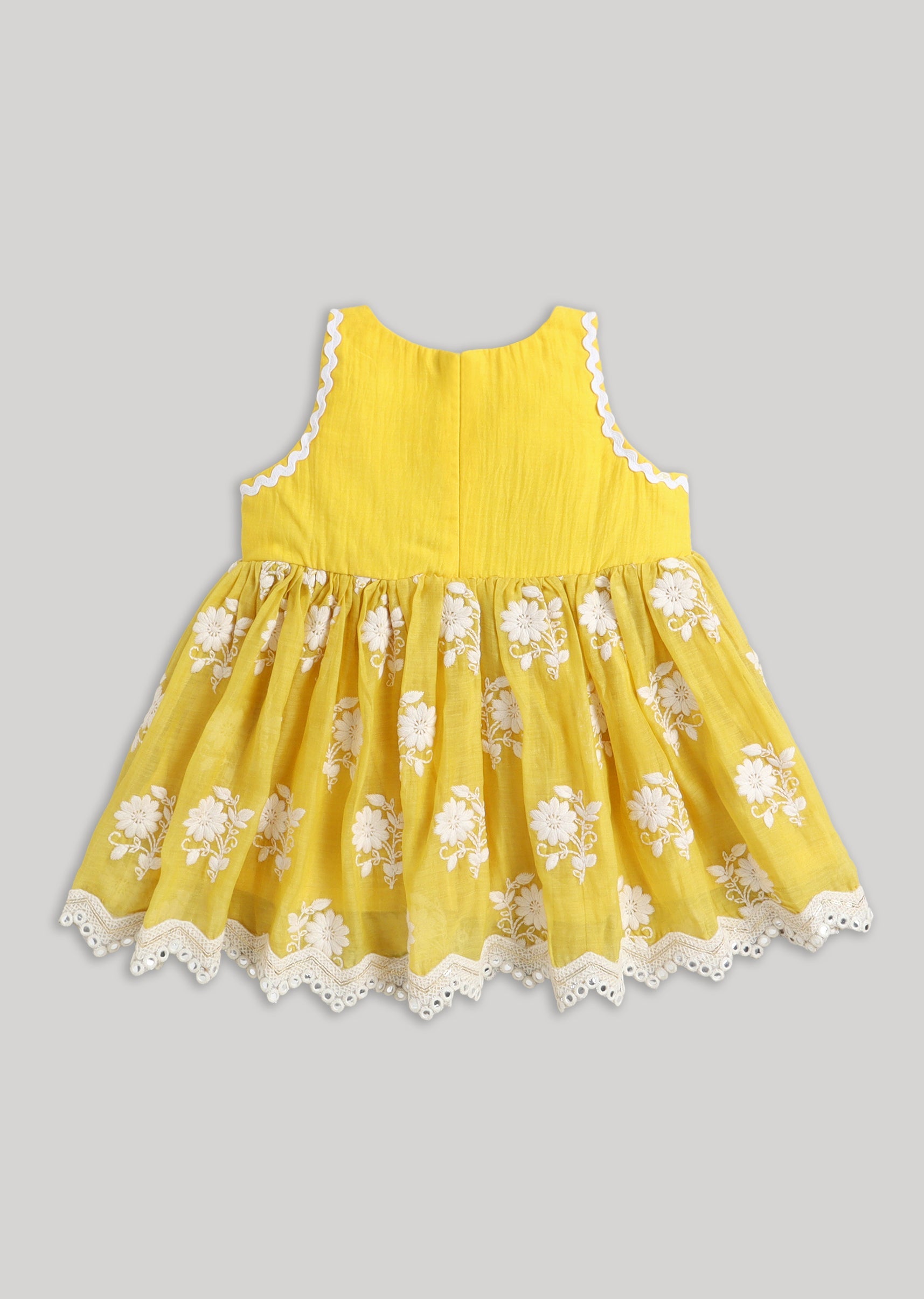 This salwar kameez set pairs a cheerful yellow tone with white accents for a fresh festive look. Chanderi fabric gives it a premium finish while staying lightweight for children. Thread/resham... More Product Details