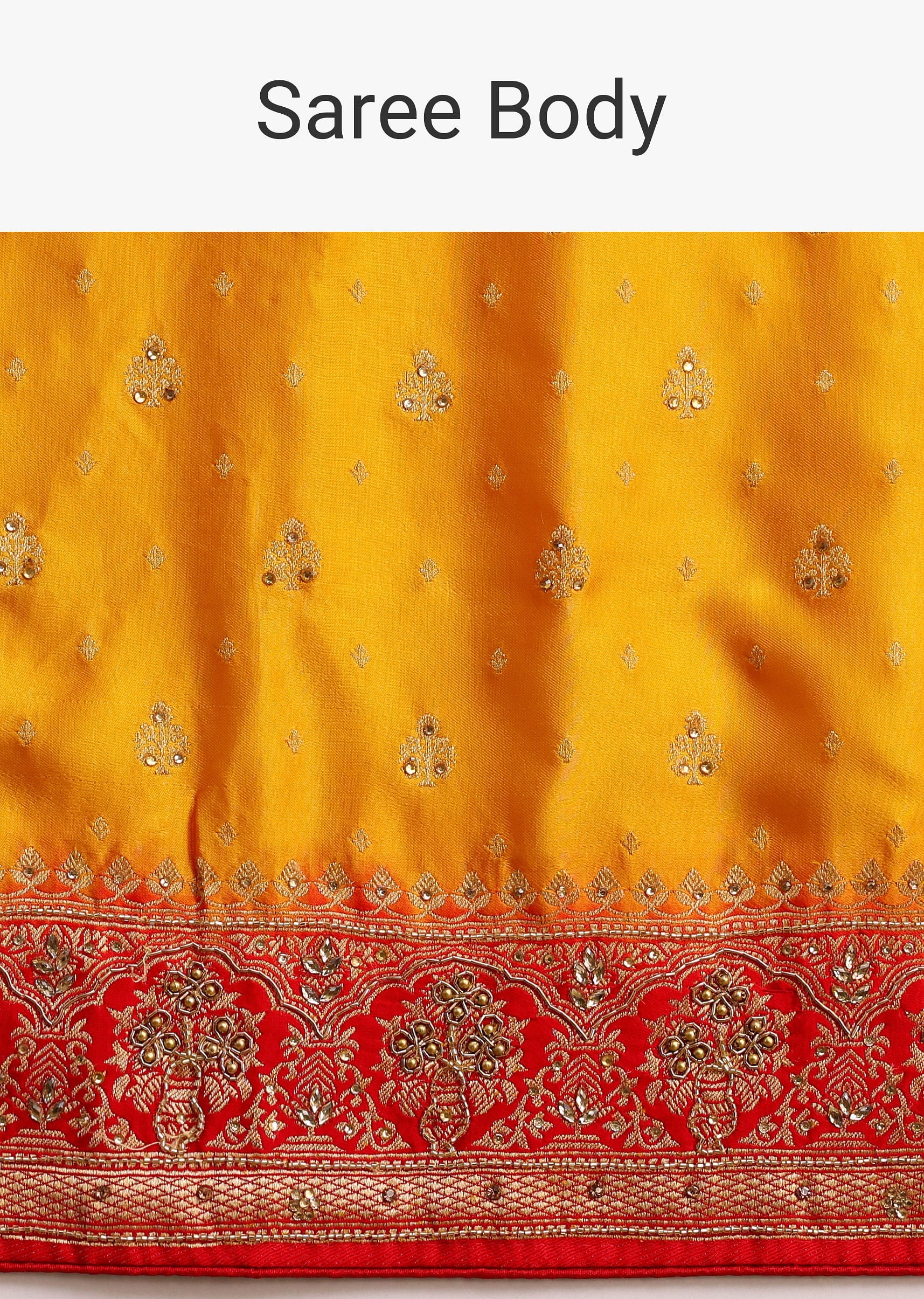 This yellow saree is a stunning fusion of traditional and modern elements. The zardosi, cudana embroidery adds a touch of elegance, while the unstitched blouse allows for a personalized fit.... More Product Details