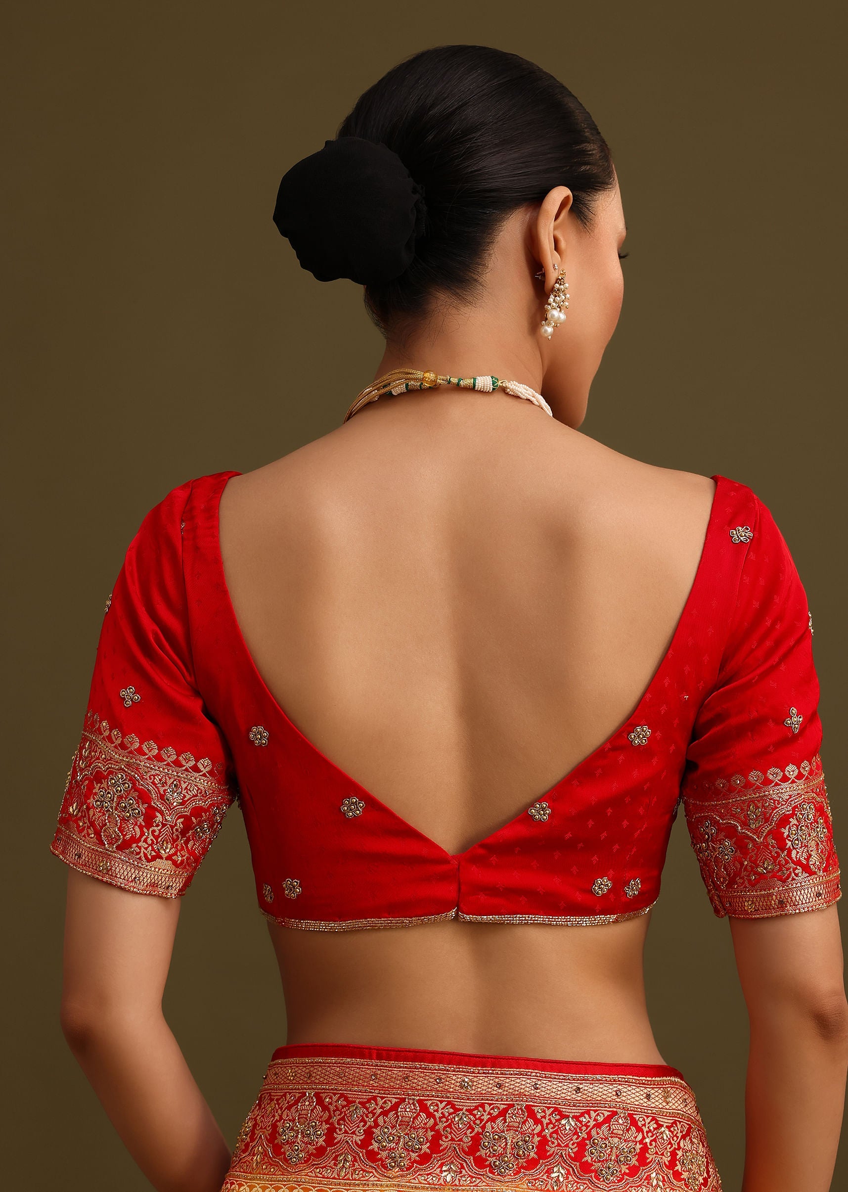 Pair the saree with appropriate footwear, such as heels, wedges, or flats.