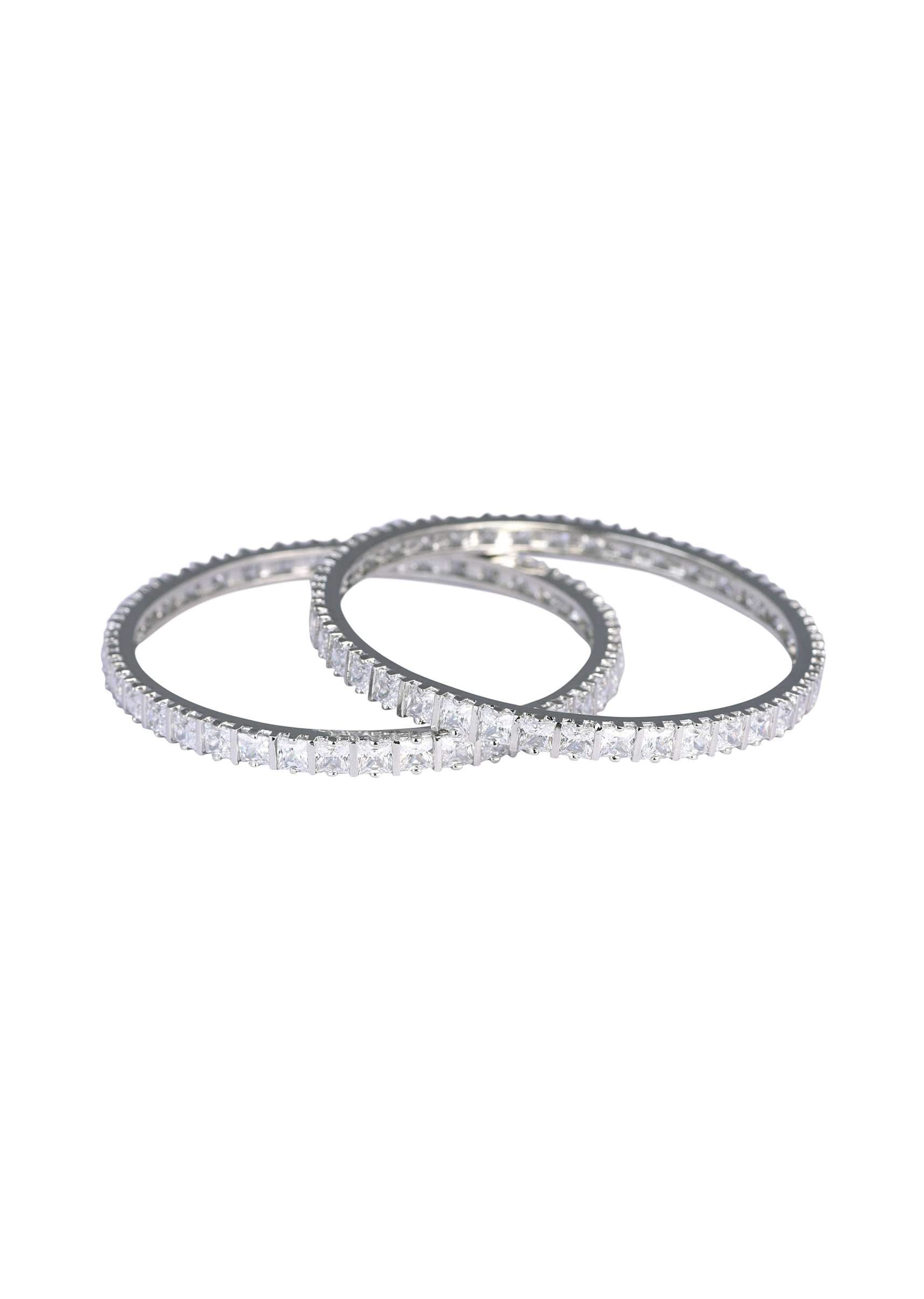 Zirconia Studded 92.5 Sterling Silver Bangles Set of 2