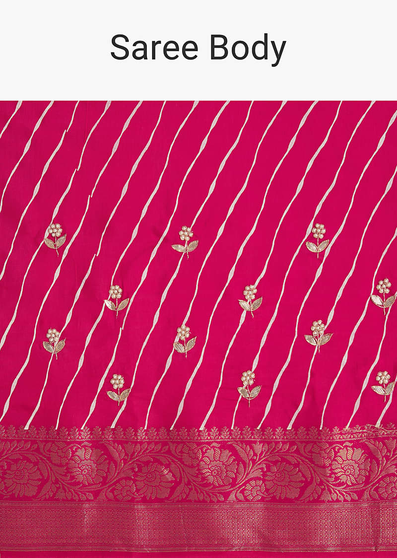 - Product Speciality : Step into tradition with this lehariya printed floral embroidered with gota patti moti work. Ideal for wedding ceremonies and bridal events. Grace that lingers with every swish of the pallu. Adorn this beauty and embody the spirit of celebration. Border may vary. Awarded as the Most Trusted Brand, we're delivering styles you love, just as promised.