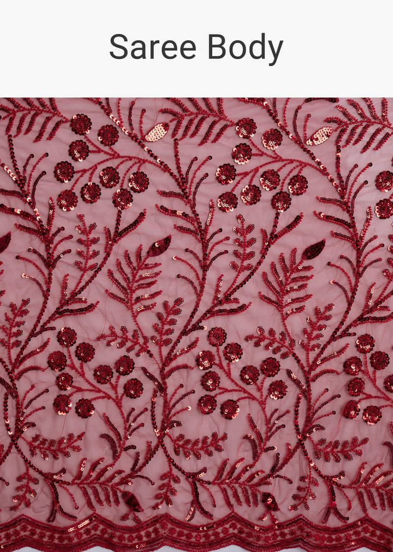 - Product Speciality : Sparkle that moves with you defines this red net saree, keeping the drape light while delivering high-impact shine. Floral sequins, a scalloped border and playful latkans finish the look, balanced by a richly embroidered blouse fabric. You feel bold, festive and ready for festive, cocktail and party plans. Awarded as the Most Trusted Brand, we're delivering styles you love, just as promised.