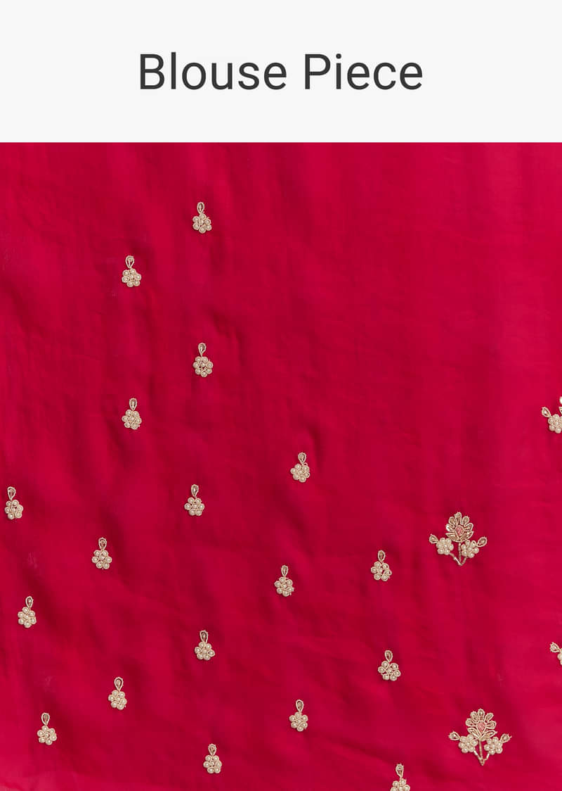 - Product Speciality : Step Into A World Of Opulence With This Exquisite Red Satin Saree Adorned With Intricate Zardosi Embroidery That Speaks Of Timeless Craftsmanship. The Delicate Detailing Of Moti Cutdana And Stones Glistens Against The Smooth Satin Fabric Creating A Mesmerizing Effect With Every Movement. The Beautifully Designed Scallop Border Enhances The Saree’S Regal Appeal Adding An Extra Touch Of Finesse. Its Luxurious Drape Exudes Elegance Making It The Perfect Choice For Weddings Receptions And Grand Festivities.Awarded As The Most Trusted Brand We'Re Delivering Styles You Love Just As Promised.