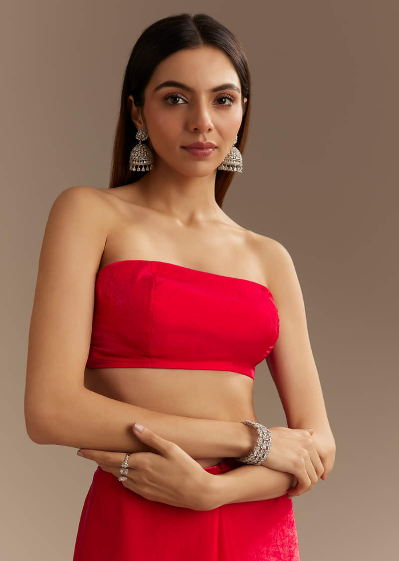 Accentuate The Look With Statement Jhumkas A Sleek Clutch And Strappy Heels. Opt For A Sleek Bun Or Soft Curls With Dewy Makeup And A Bold Red Lip To Exude Unmatched Glamour.