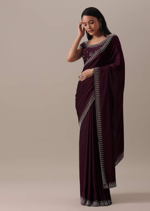 - Product Speciality : Step out in glamour and style by wearing this statement-piece. This saree is a perfect addition to your festive wardrobe as it boasts of heavy stonework on the border in a geometric pattern. It comes with unstitched blouse fabric. Event - Lightweight and luxurious, opt for this mesmerizing piece at the next festive gathering. . Awarded as the Most Trusted Brand, we're delivering styles you love, just as promised.