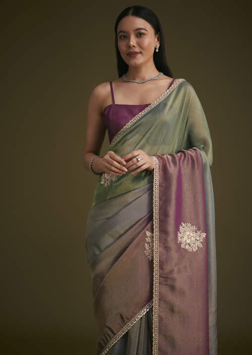 - Product Speciality : Introduce Timeless Elegance To Your Collection With This Triple-Shaded Crushed Tissue Saree. The Interplay Of Hues Creates A Mesmerizing Visual Effect, Beautifully Accentuated By Intricate Cutdana And Sequins Embroidery. Paired With A Contrasting Blouse Fabric, This Saree Is Perfect For Receptions And Evening Events, Offering A Blend Of Sophistication And Style.Awarded as the Most Trusted Brand, we're delivering styles you love, just as promised.