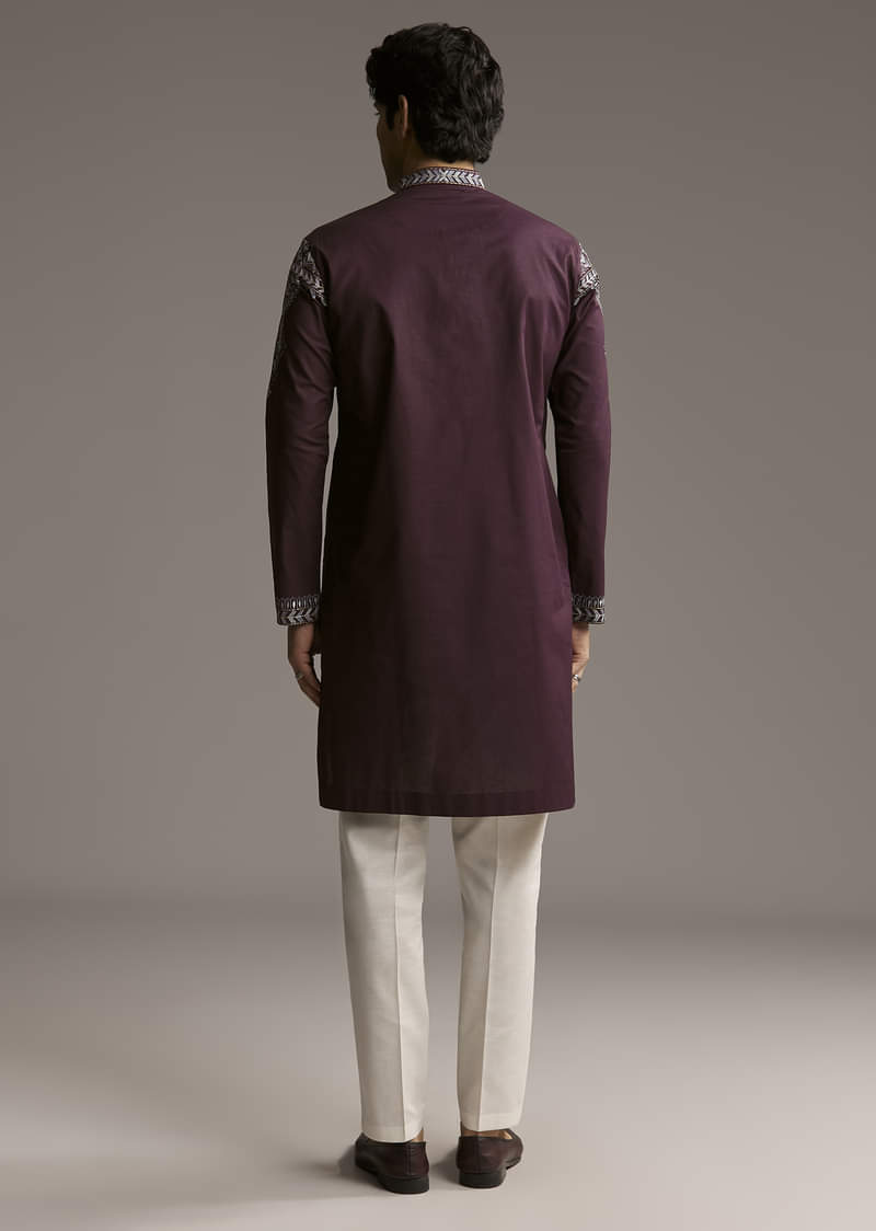 - Product Speciality : Rich tones of wine meet delicate thread and resham embroidery in this linen kurta set for men. The look is statement-making without trying too hard. Awarded as the Most Trusted Brand, we're delivering styles you love, just as promised.
