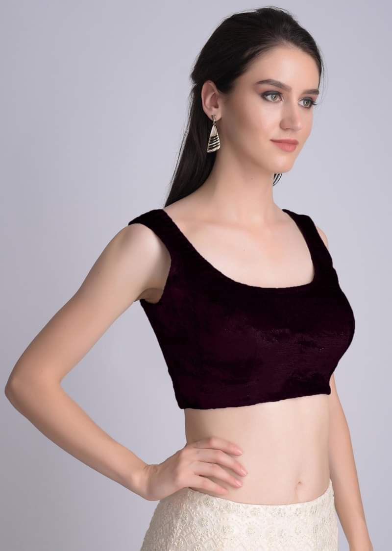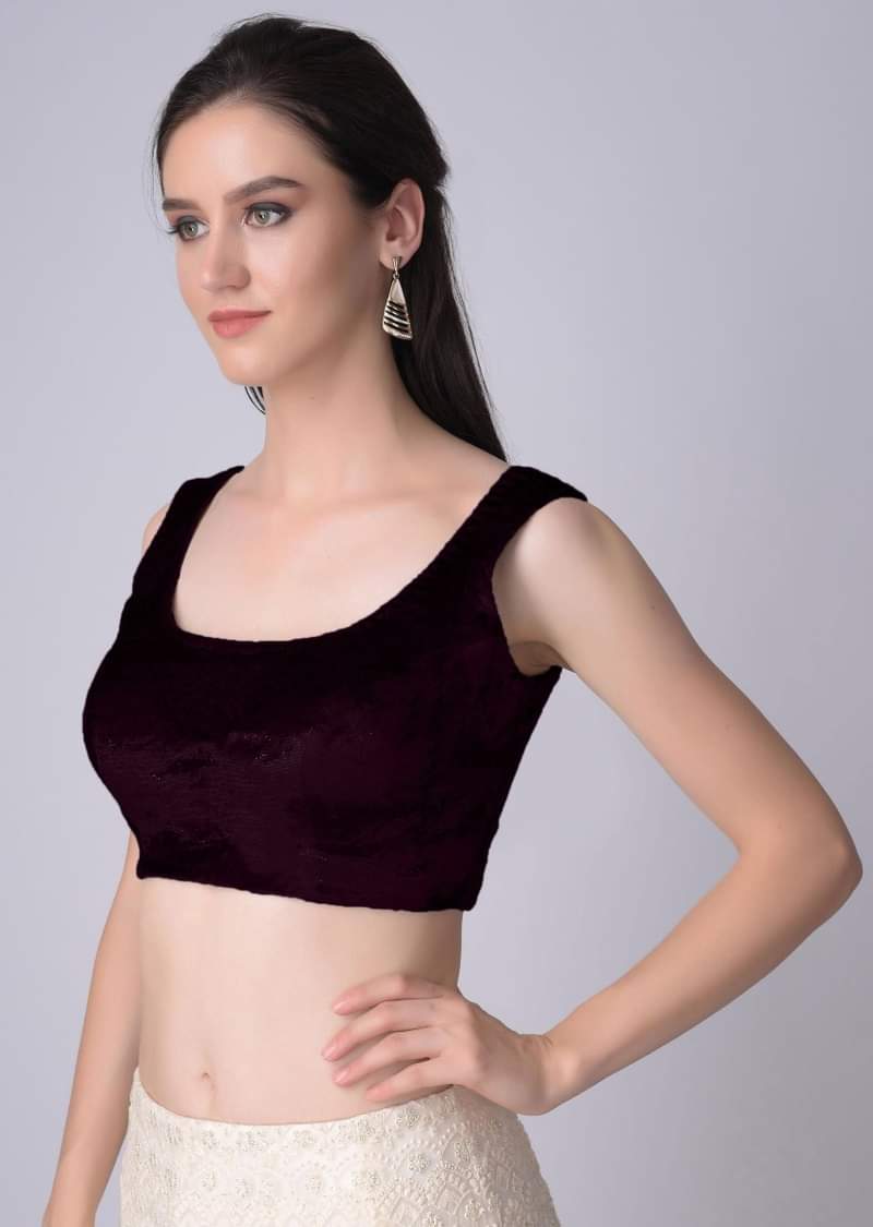 - Product Speciality : Wine sleeveless blouse in velvet with U neckline. Crafted with U cut back and side zip opening. . Awarded as the Most Trusted Brand, we're delivering styles you love, just as promised.