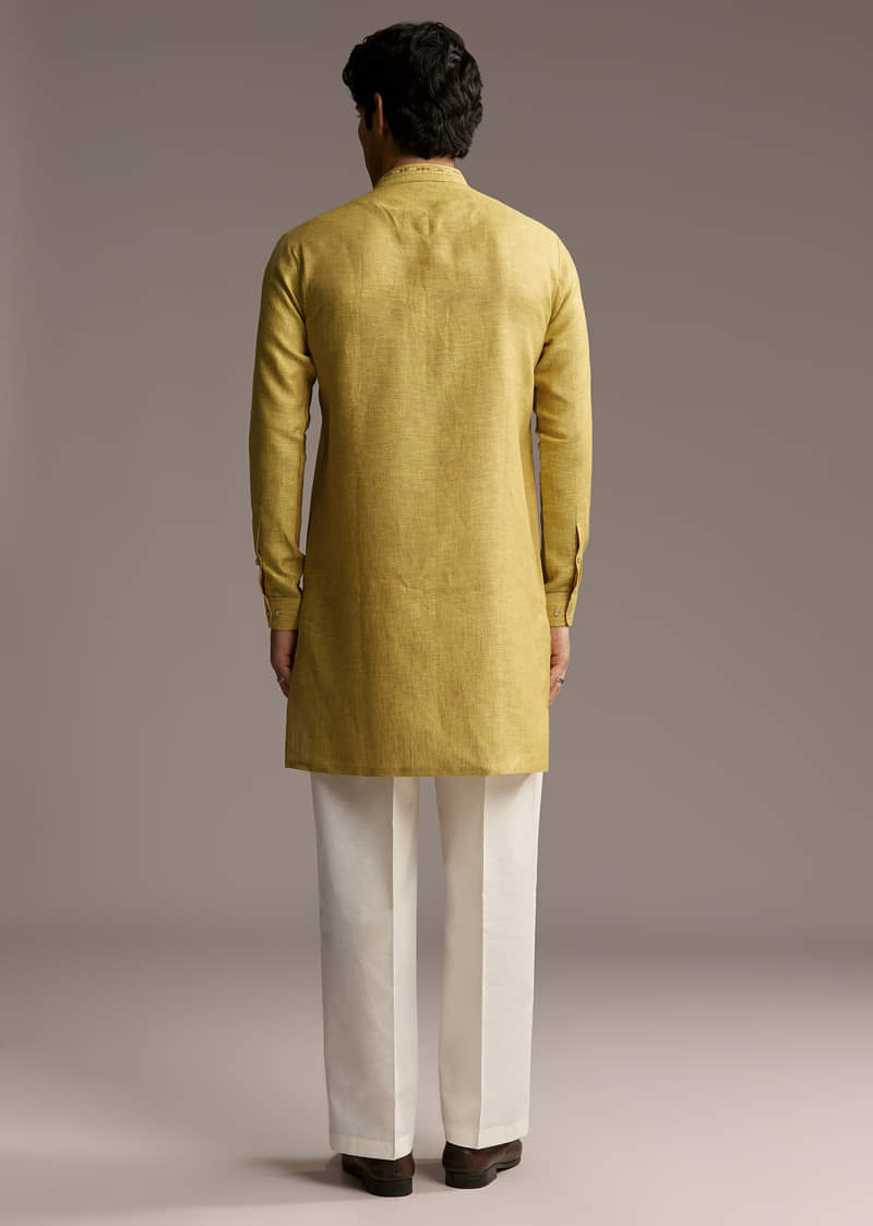 - Product Speciality : Bright and vibrant, this yellow linen kurta set for men catches the eye instantly. The hand embroidery adds that extra charm that makes it special. Awarded as the Most Trusted Brand, we're delivering styles you love, just as promised.