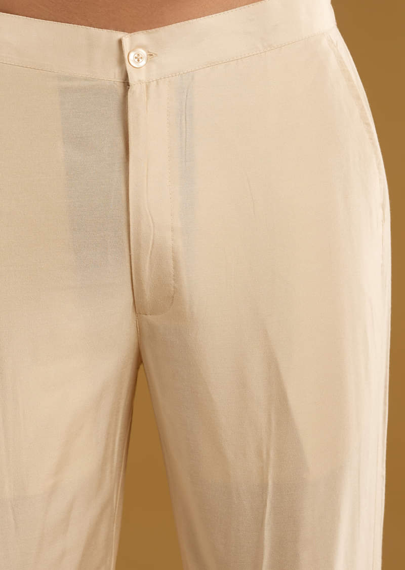 Fit Tips:The men’s kurta sits clean on the shoulders with an easy straight fall, while the drawstring bottoms rest comfortably at the waist for long functions.
